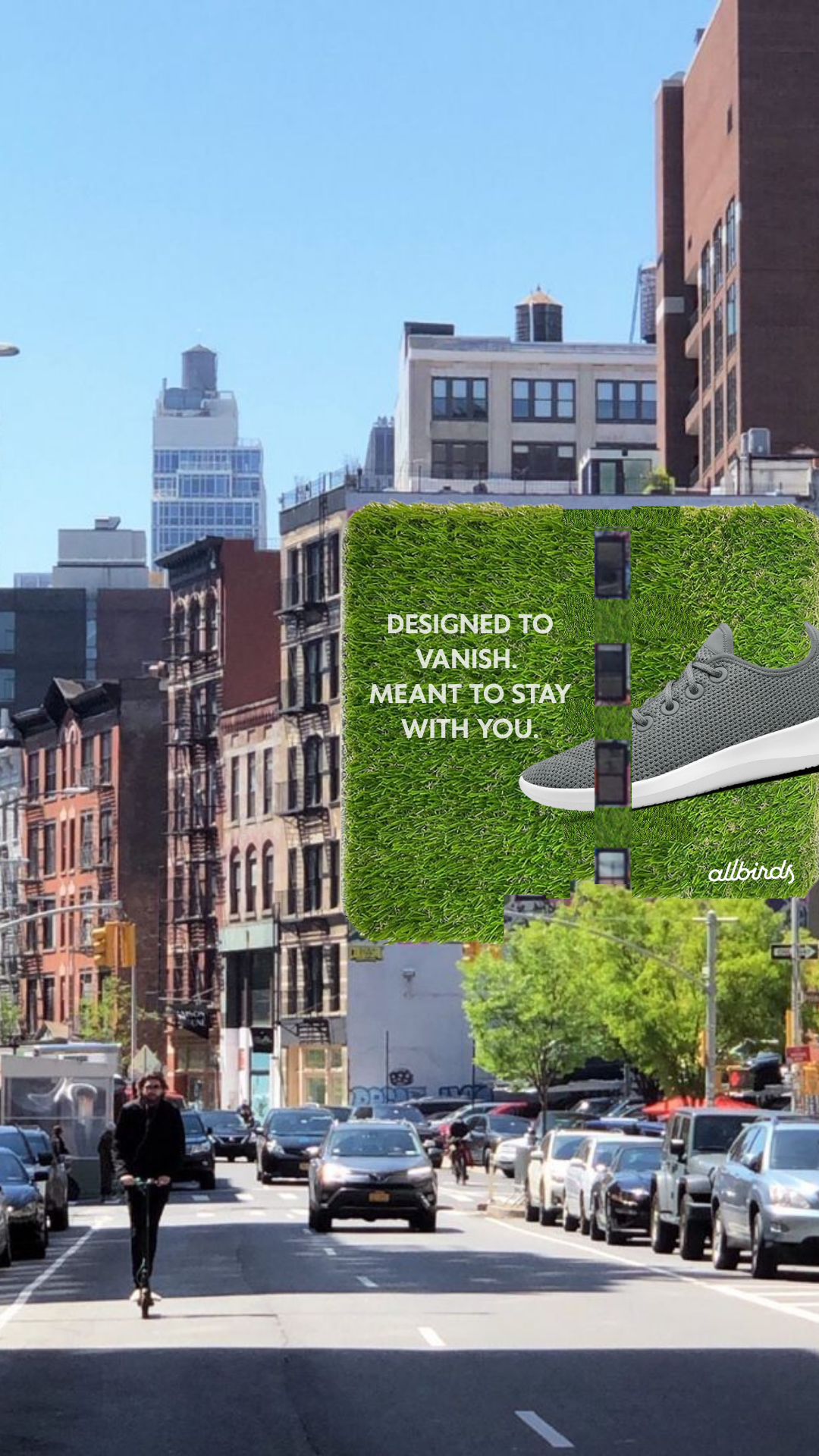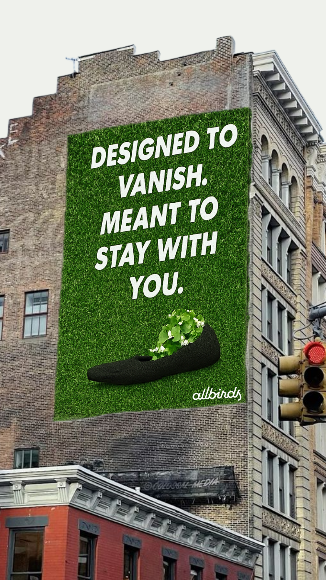 By using the same natural materials as the shoe, the billboard disappears just like Allbirds’ environmental impact is designed to do.